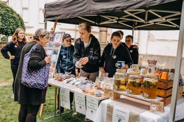 Domácí limonádu ze smrkových výhonků - byla skvělá a hlavně čepovaná do EKO hrníčků. Ručně vyráběná mýdla, pampeliškový med, sůl do koupele a bylinné čaje.