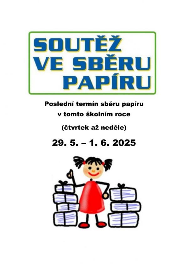 Blíží se poslední termín sběru papíru v letošním školním roce!