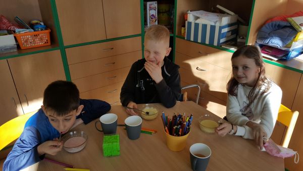 Vzhledem k velké nepřízni počasí nastal výpadek proudu, a tak nám ve školní jídelně nemohli uvařit oběd. Nevadí, poradili jsme si. Děkujeme vedení školy za nákup čerstvého pečiva a p. uč. Sirotkové za její výborné domácí zavařeniny. Děti si dnešní oběd moc pochvalovaly a nejraději by ho opět zopakovaly. Strávili jsme spolu hezké odpoledne, při čtení vtipů jsme vyráběli ze zažehlovacích korálků a nikomu se nám ani nechtělo domů.
