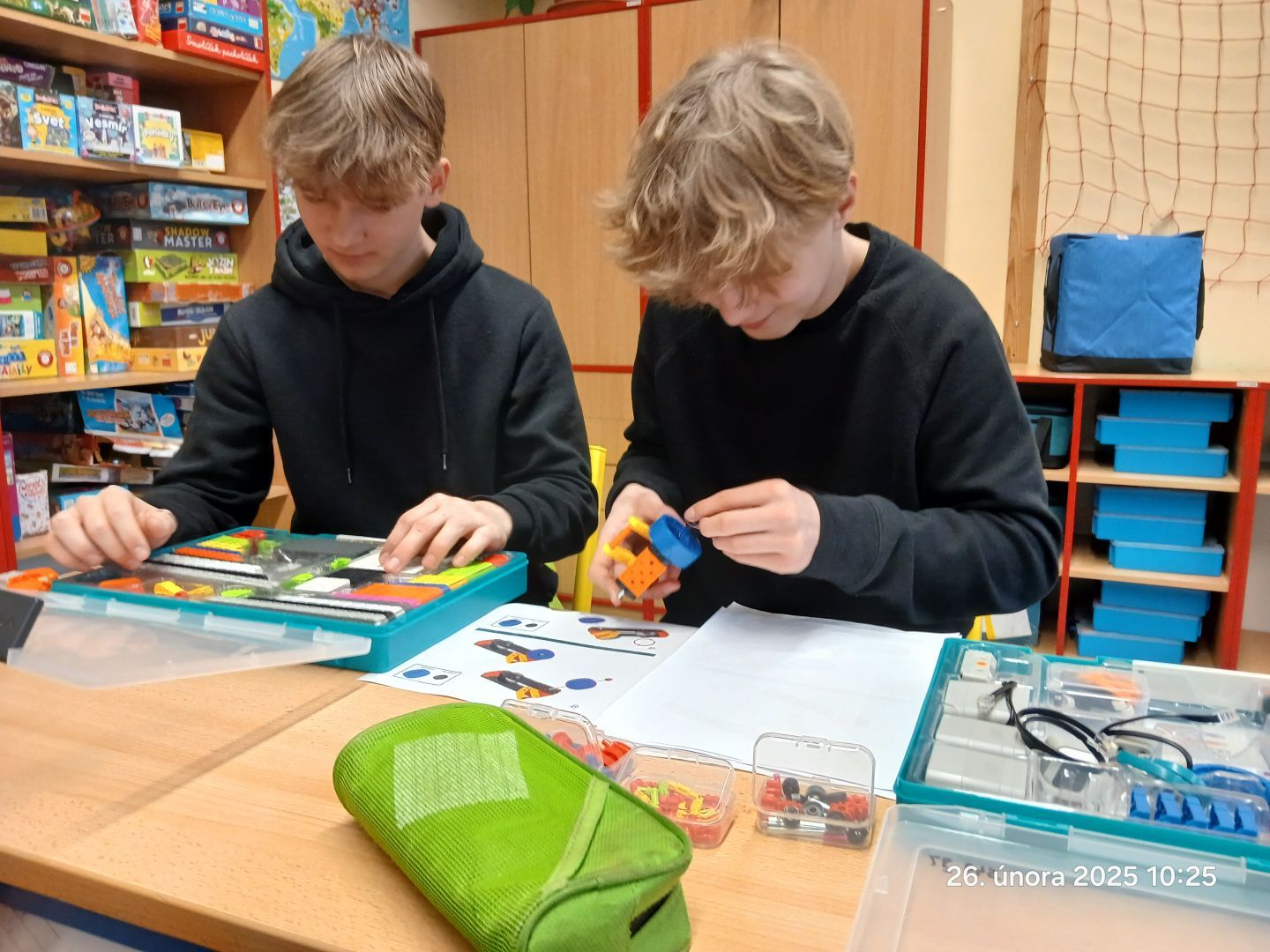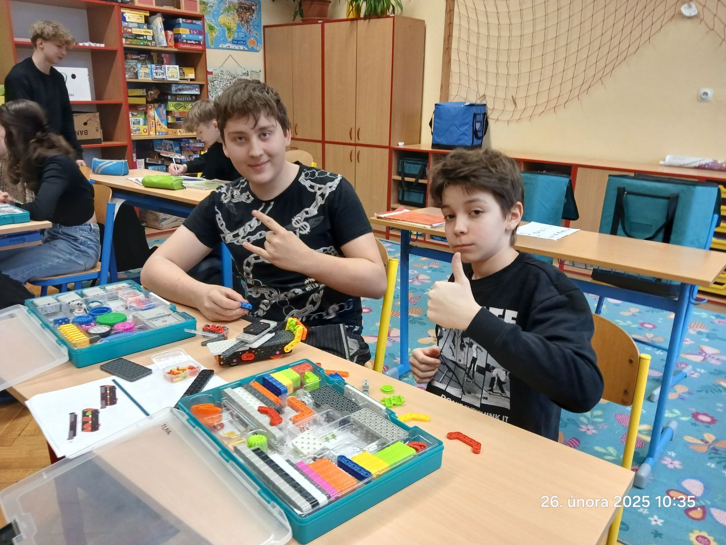 Dnes si žáci 9. třídy v hodině informatiky vyzkoušeli naši robotickou sadu VEX GO a pustili se do stavby různých modelů. Mezi jejich výtvory nechyběl králík, auto, tank a spousta dalších zajímavých robotů!