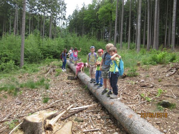 Velká pěší výprava...z kopce do kopce...cestou necestou...popředu i pozpátku...stoupáme nad Hořice...to je výhled!...Masarykova věž samostatnosti na obzoru...kaplička...lesní školka "Lišákovo doupě" - děti, ovečky, houpajda, zvonkohra, milé přijetí, co víc si přát...a zpátky je to z kopceeee...pár přírodních úkolů...sojka si nás stráží...sláva nazdar výletu, nezmokli jsme, už jsme tu!
