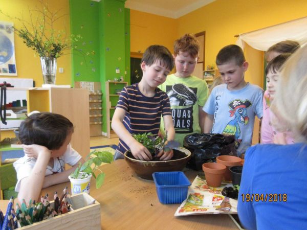 Sázíme kedluben...salát...macešky...sejeme semínka...ředkvičky...řeřichy...zaléváme...pozorujeme...hrajeme si se šnečí rodinkou...