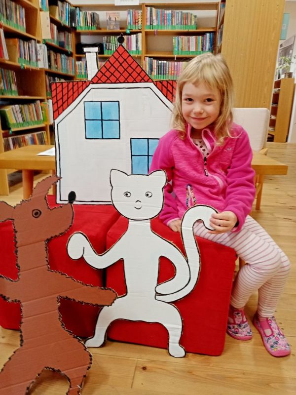 V knihovně na zámku pro nás připravily paní knihovnice zábavné interaktivní dopoledne s pejskem a kočičkou a jejich příběhy od pana spisovatele Karla Čapka. Bylo to moc milé dopoledne a již teď se těšíme na další návštěvu knihovny:-)