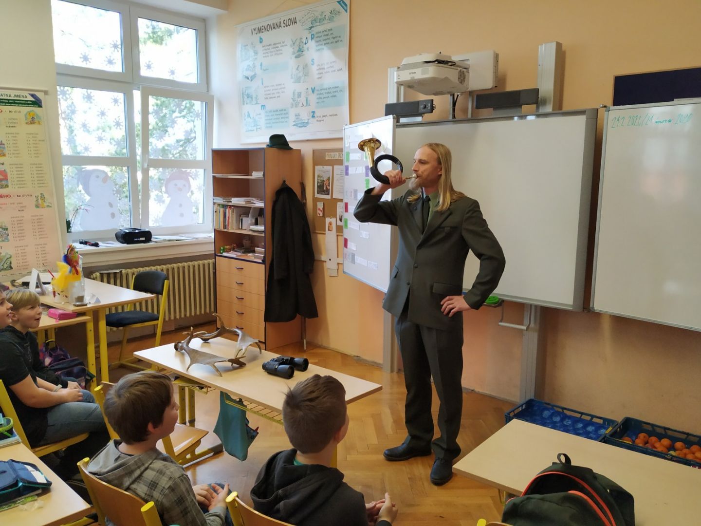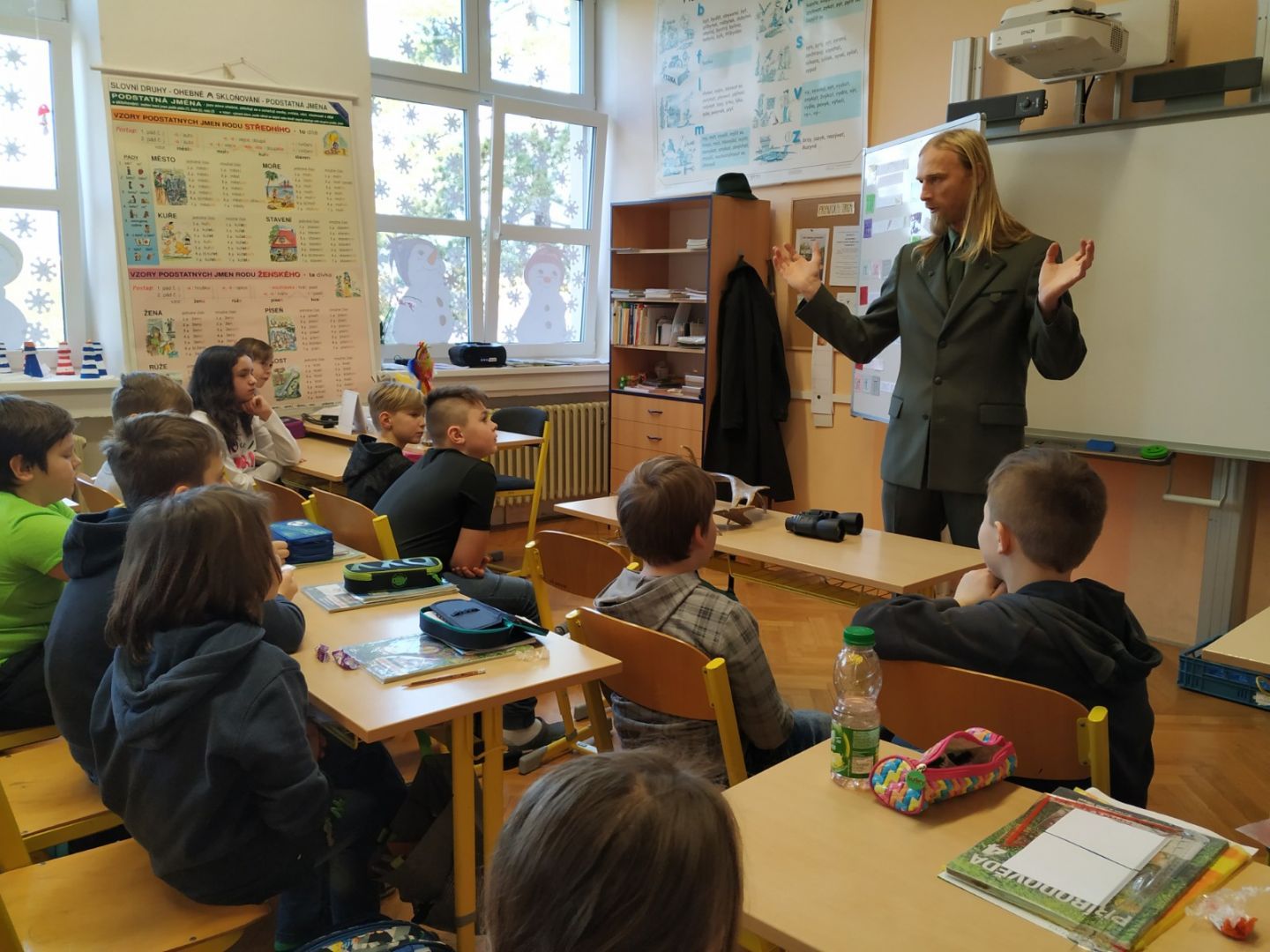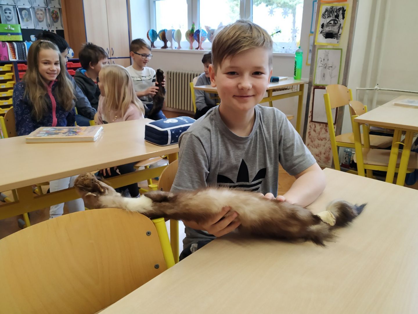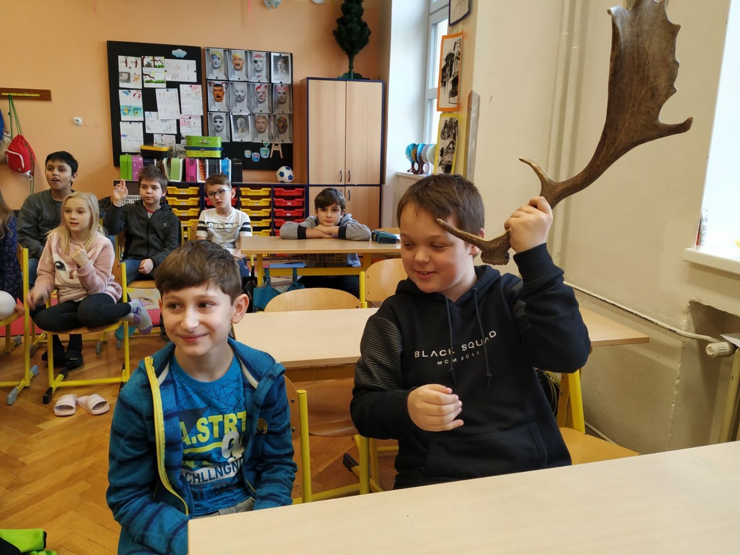 Žáci čtvrtých ročníků se v rámci přírodovědy dozvěděli základní informace o lesní zvěři i lesních dřevinách. Beseda se zástupcem mysliveckého sdružení byla doplněním a zpestřením výuky. Děti se dozvěděly různé zajímavosti o dění v lese, o chování lesní zvěře i o práci lidí, kteří se o les starají.