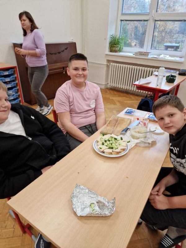 Vaření nás baví, tak jsme se v rámci pracovních činností pustili do přípravy jednohubek. Šlo nám to hezky od ruky a na závěr jsme si na nich všichni pochutnali.