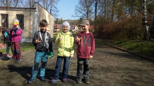 Zapomenuté klasické jarní hry??? Vyzkoušeli jsme. 1.místo Eliška Šubrtová, 2. místo Lukášek Horňák, 3. místo Sam Šulc.