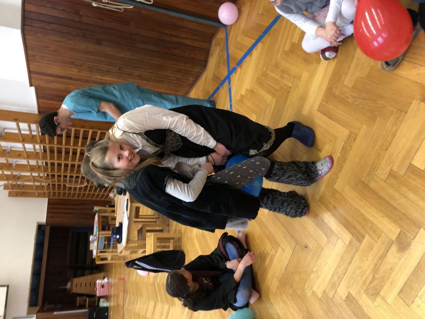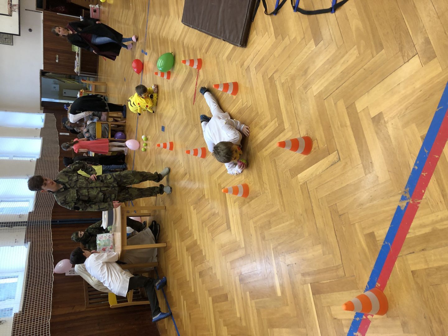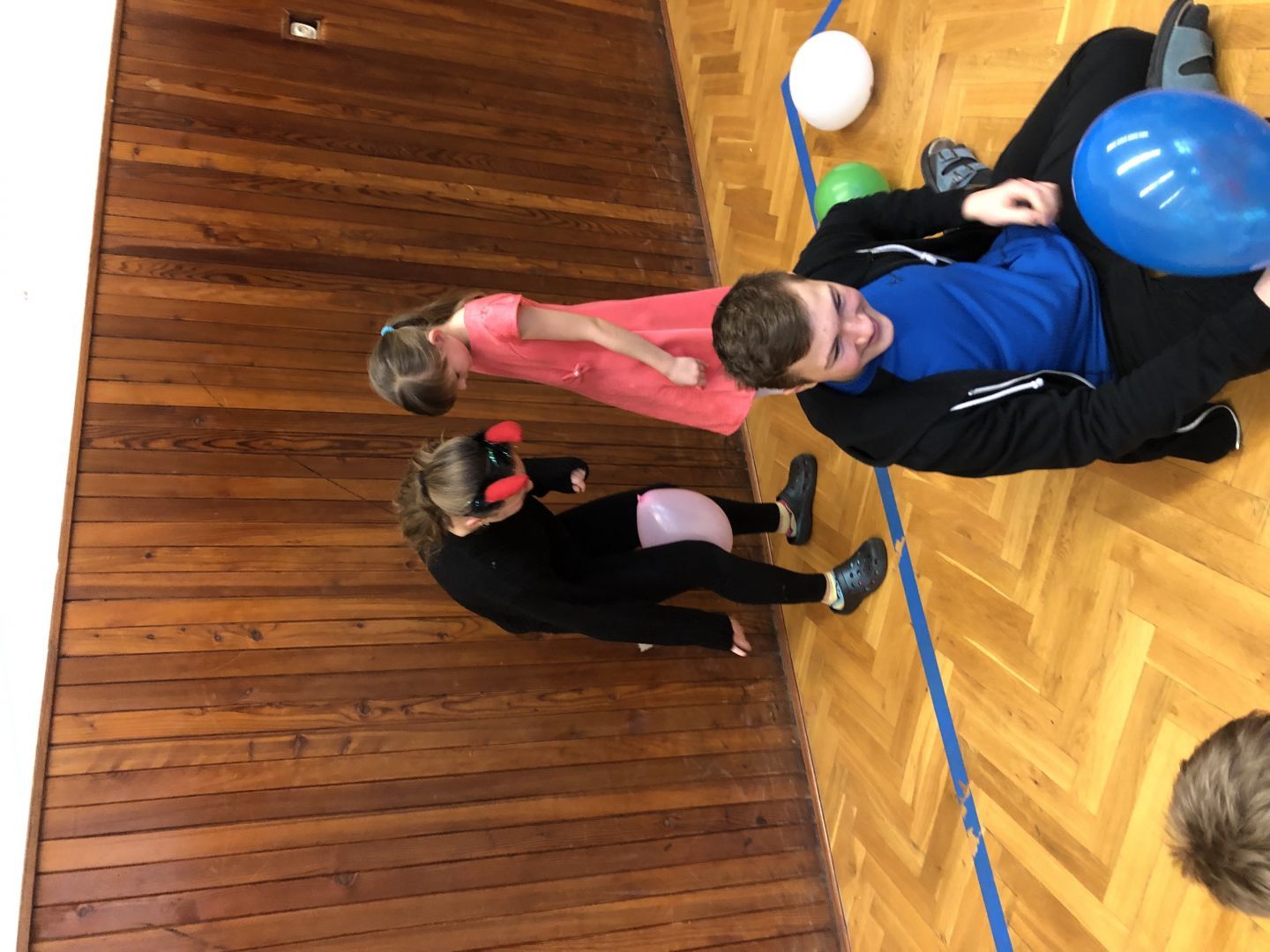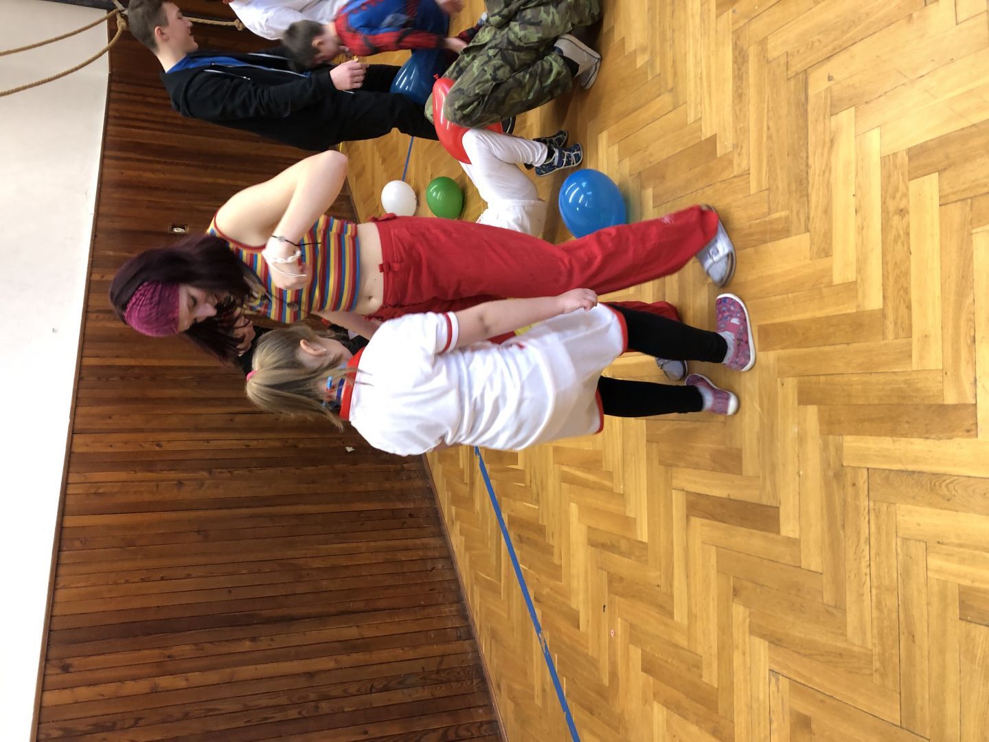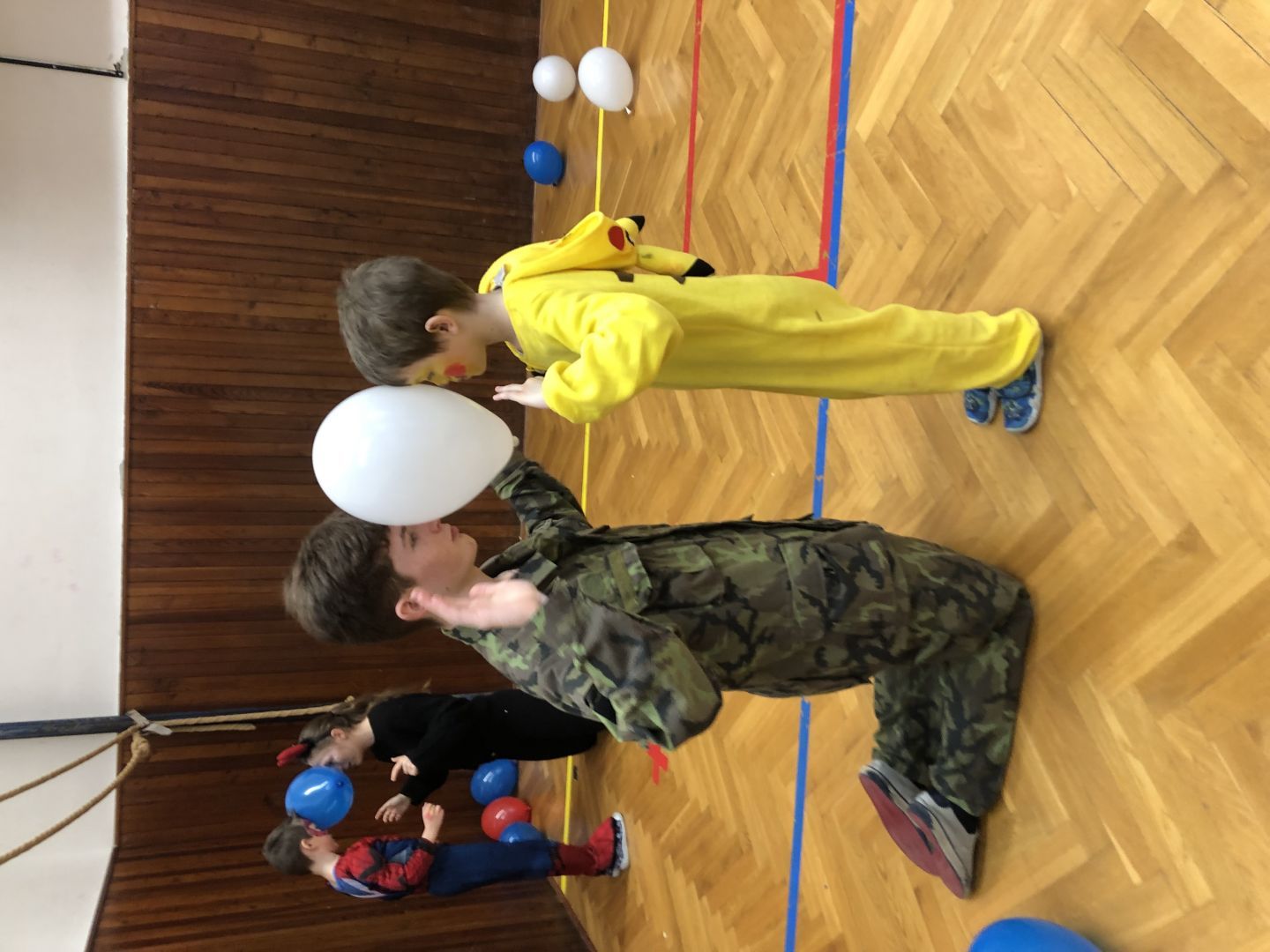 S řádně plným bříškem nás čekal tanec s balonky, předávání balonků a nakonec i prasknutí balonku … jak jinak než dvojice velcí s malými!