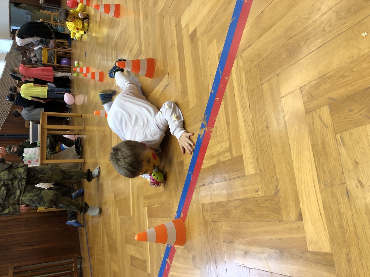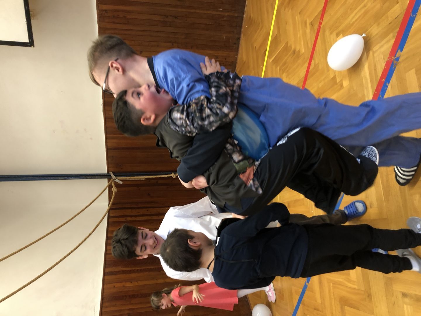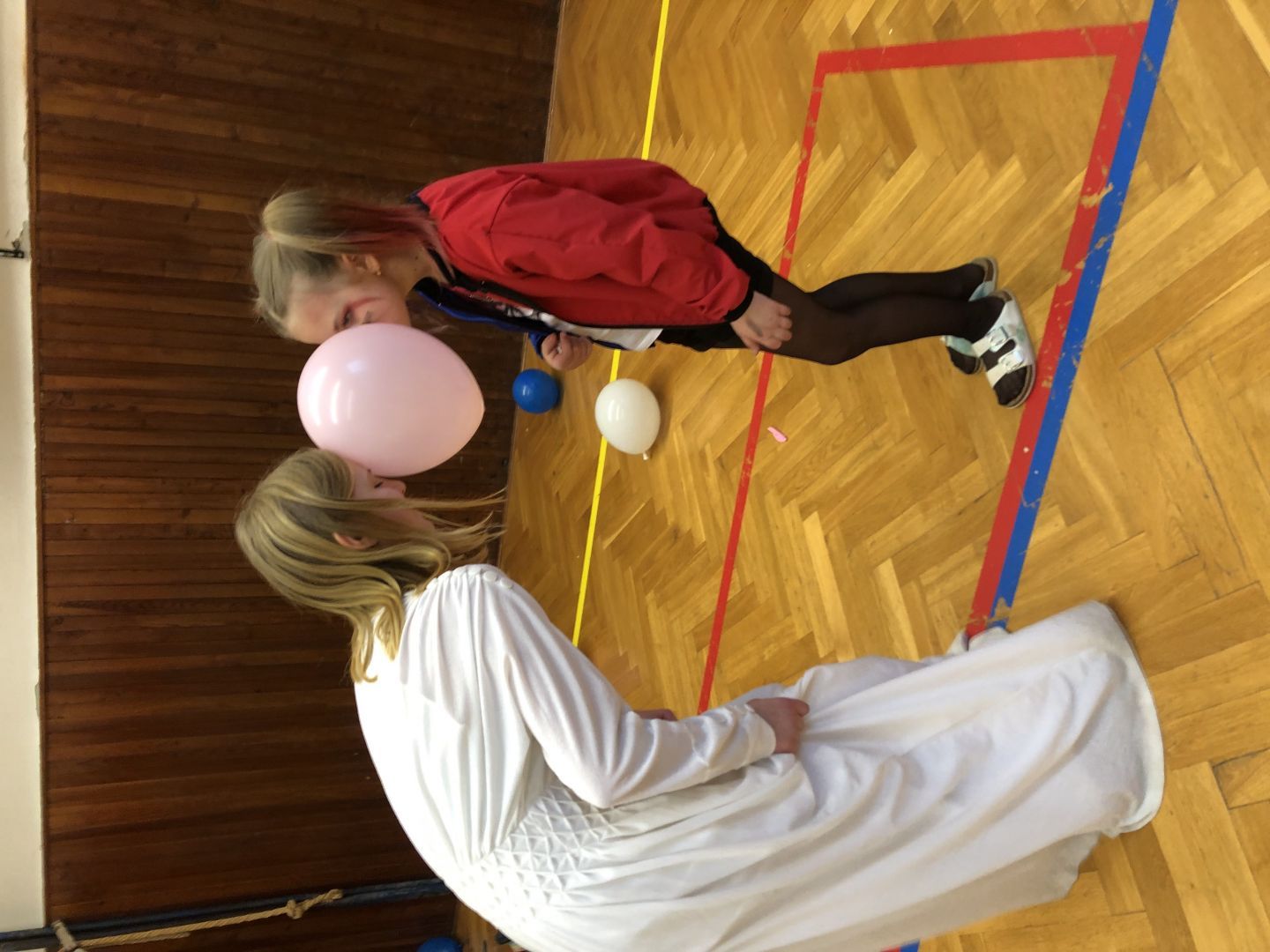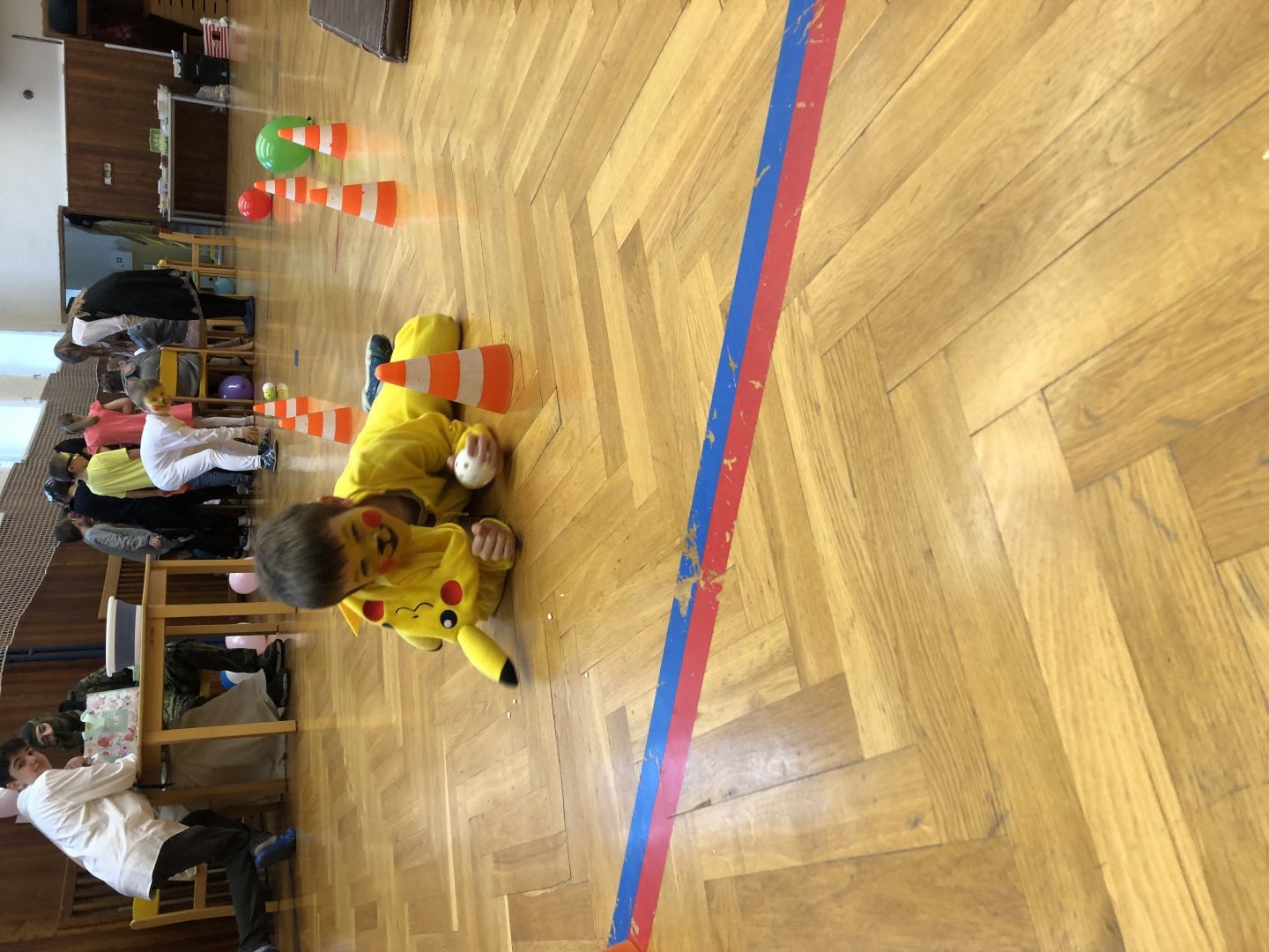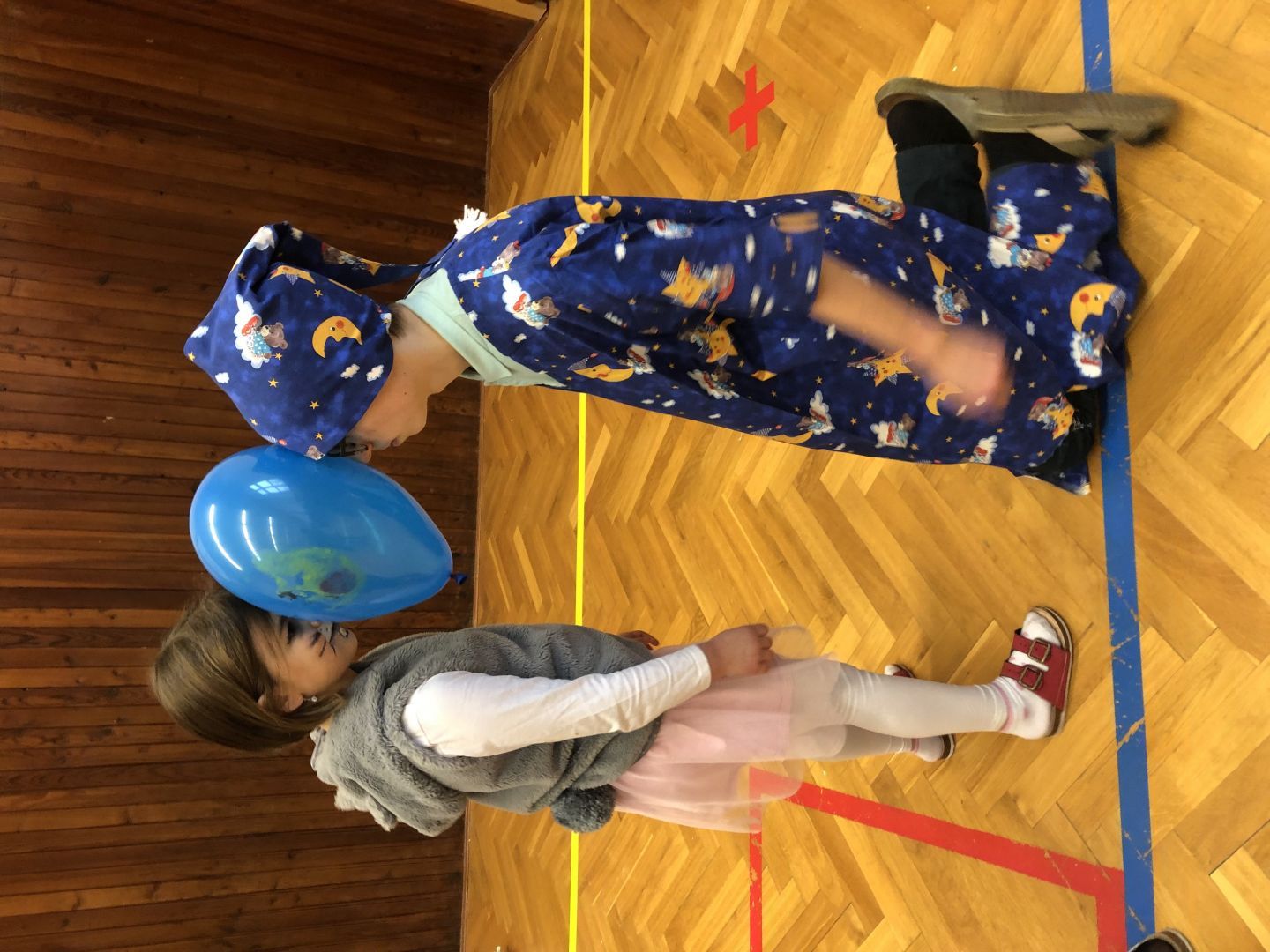S řádně plným bříškem nás čekal tanec s balonky, předávání balonků a nakonec i prasknutí balonku … jak jinak než dvojice velcí s malými!