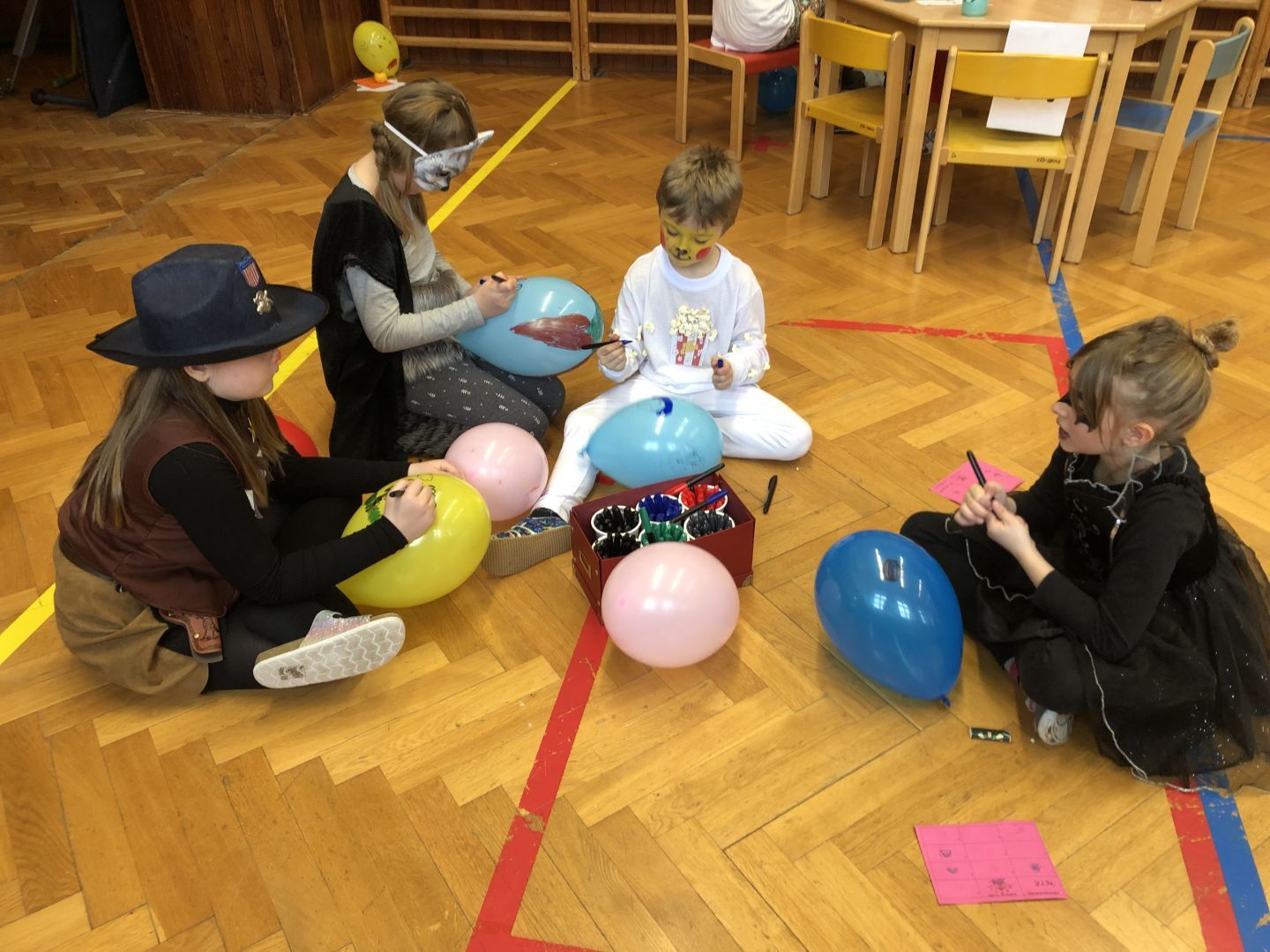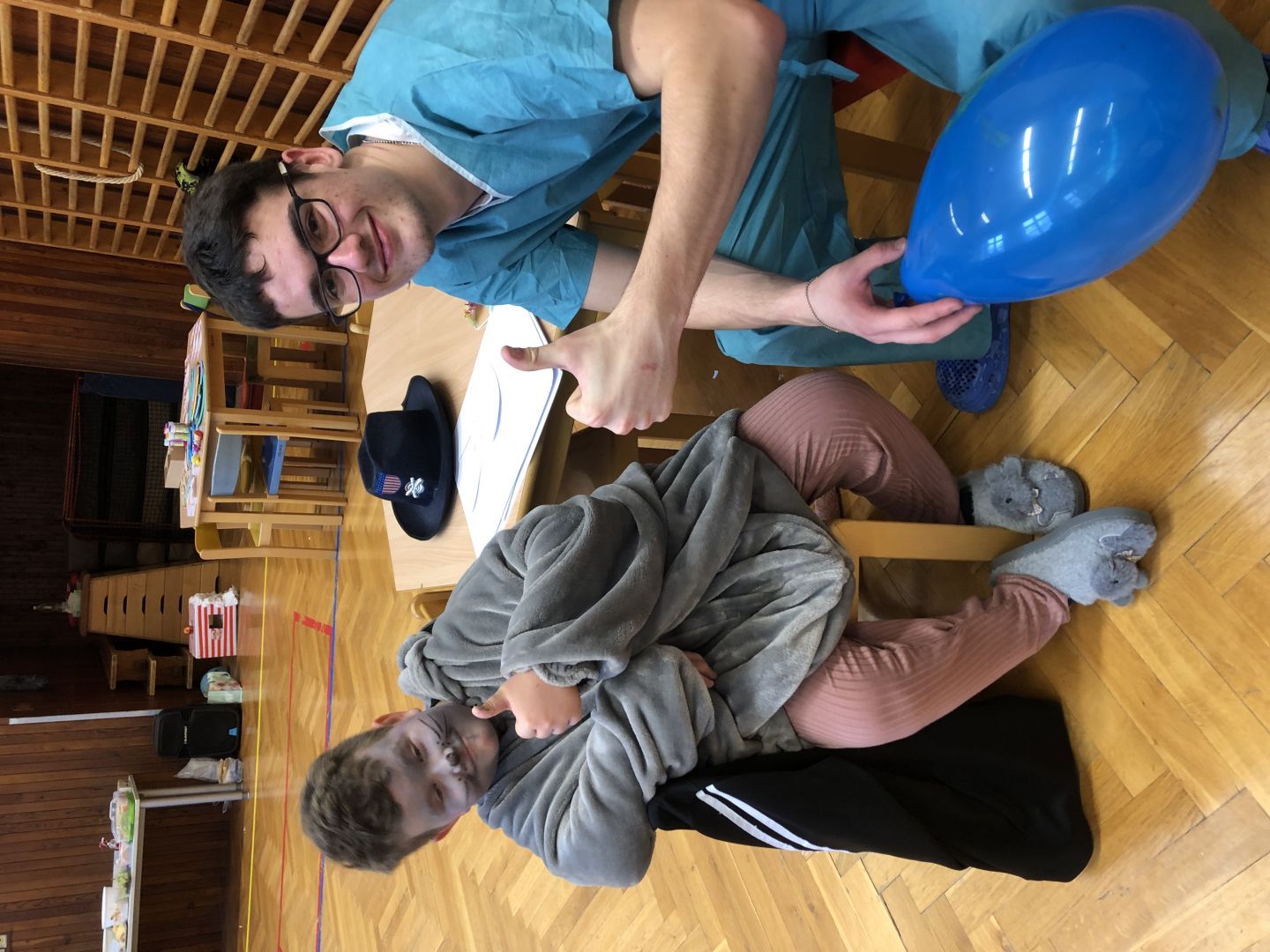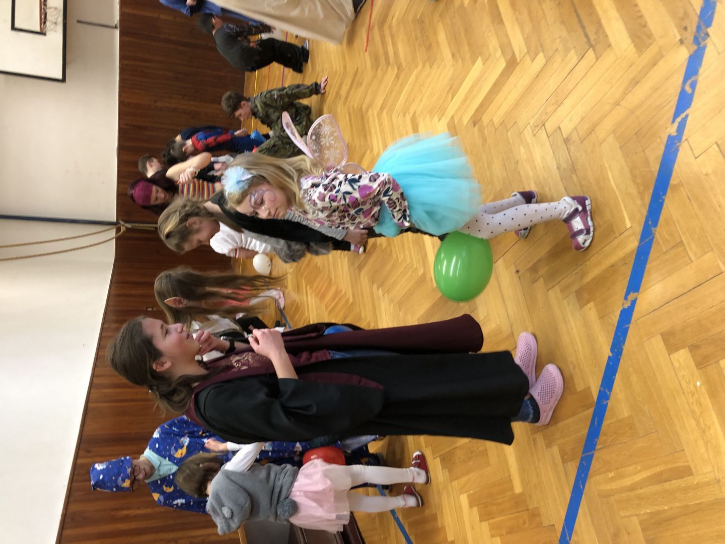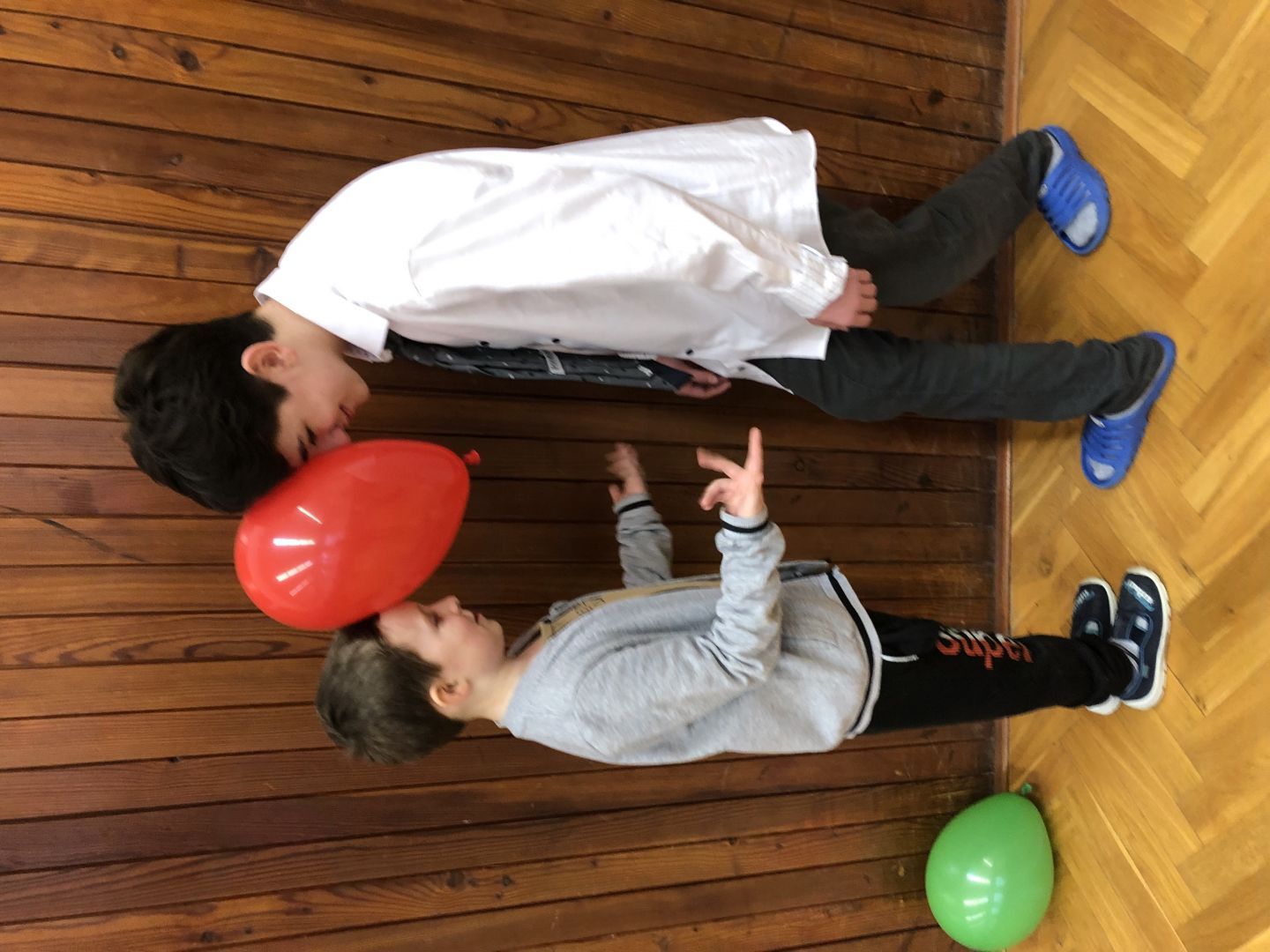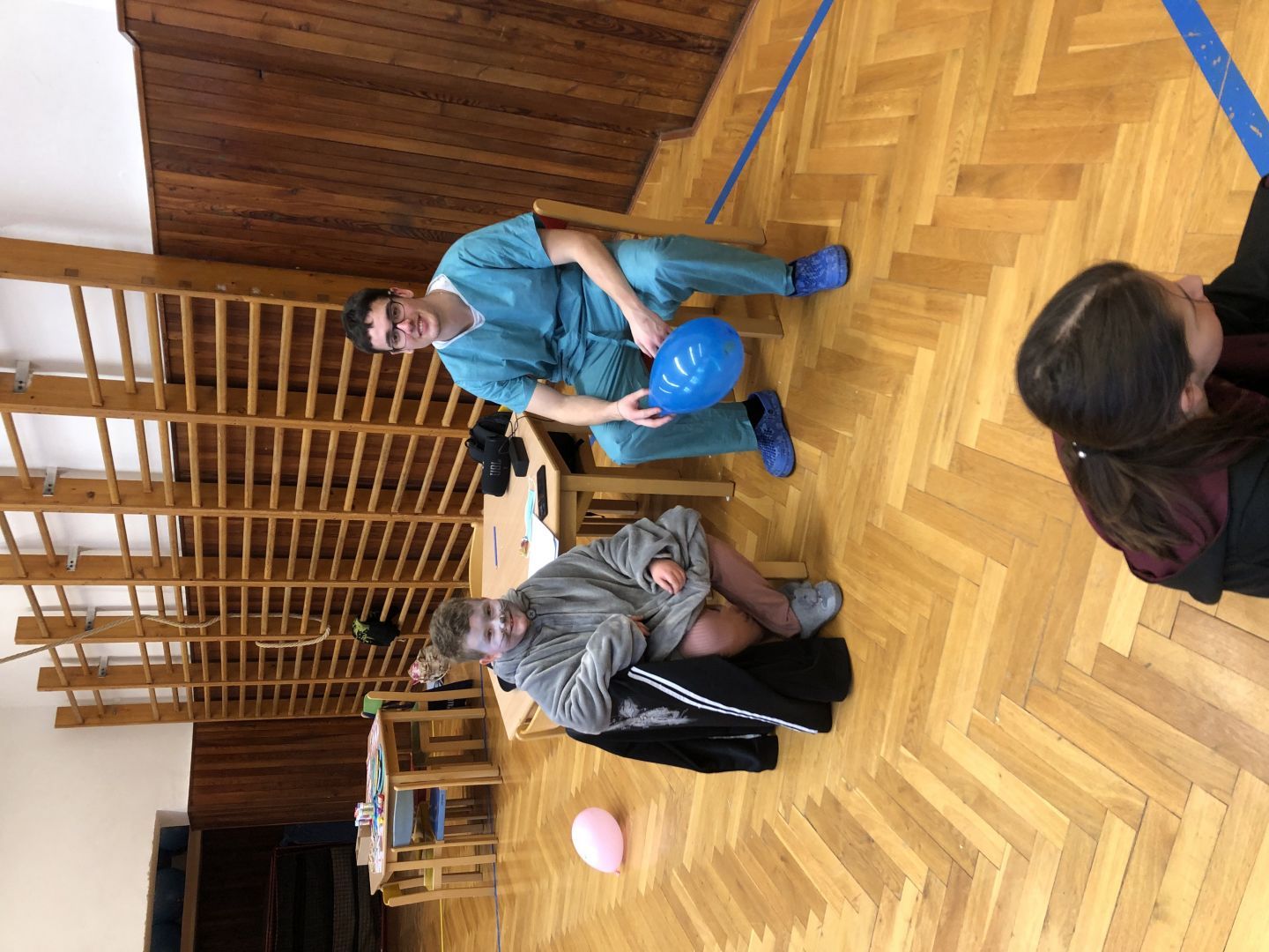 S řádně plným bříškem nás čekal tanec s balonky, předávání balonků a nakonec i prasknutí balonku … jak jinak než dvojice velcí s malými!