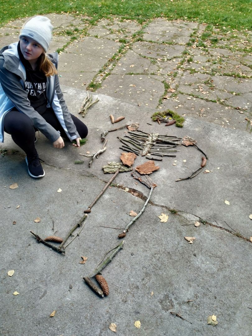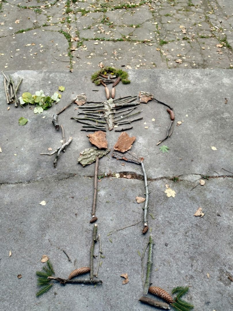 Třídy Devátá třída (B) 2023 Kategorie Ekotým, Základní škola, Věda, Tvorba, Příroda Datum konání akce 4. listopad 2021 Nesedíme pořád ve třídě - učíme se i venku. Z přírodnin jsme poskládali lidskou kostru.