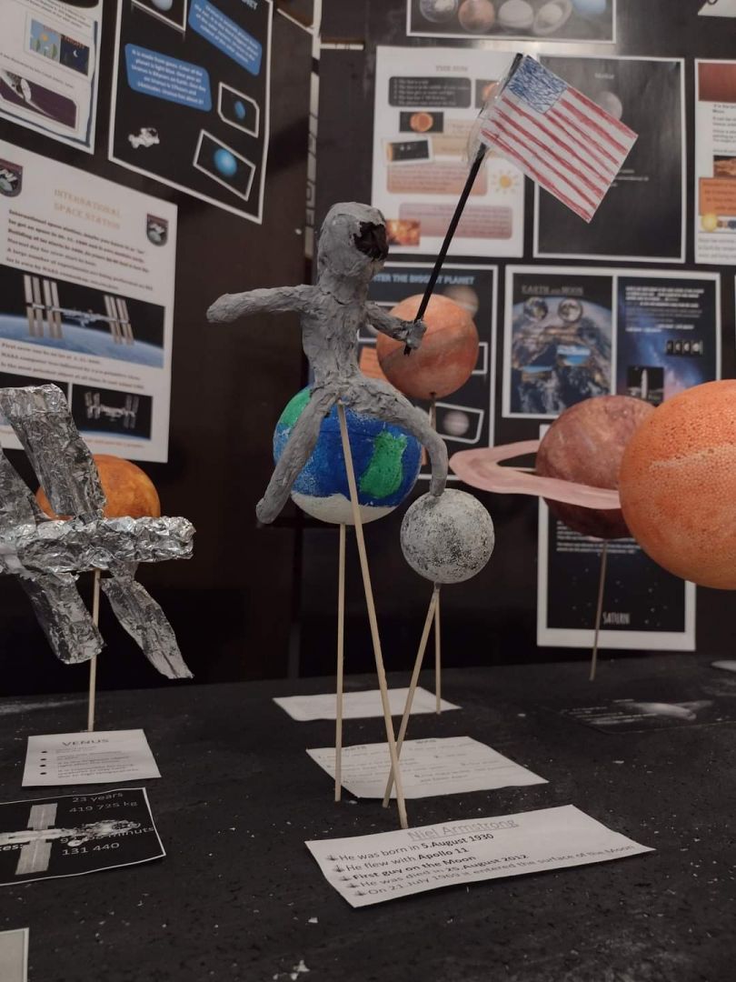 Obě osmé třídy se pod důvtipným vedením svých vyučujících vydaly do tajů sluneční soustavy a anglické gramatiky. Rešerše na téma a konstrukce vět však nebyly jedinými protivníky na cestě za poznáním. Tvorba modelu - to vyžaduje kumšt a důmysl! Síly museli osmáci poměřit rovněž s proradným Wordem (tvorba plakátu) a záludným PowerPointem (tvorba prezentace). Své limity pak mnozí překonávali při závěrečném představování vlastního díla před zraky svých spolužáků.