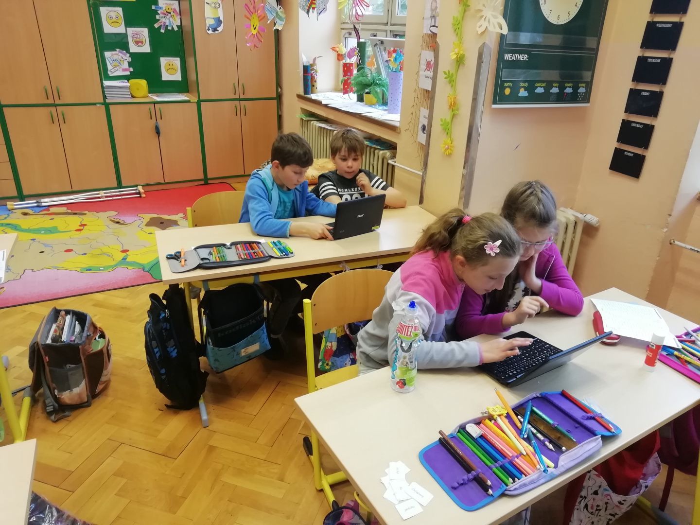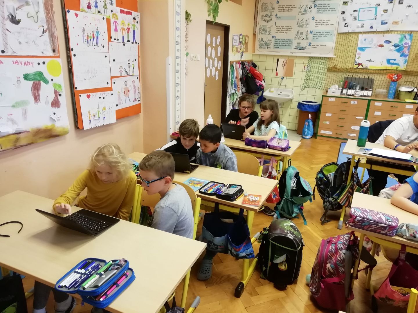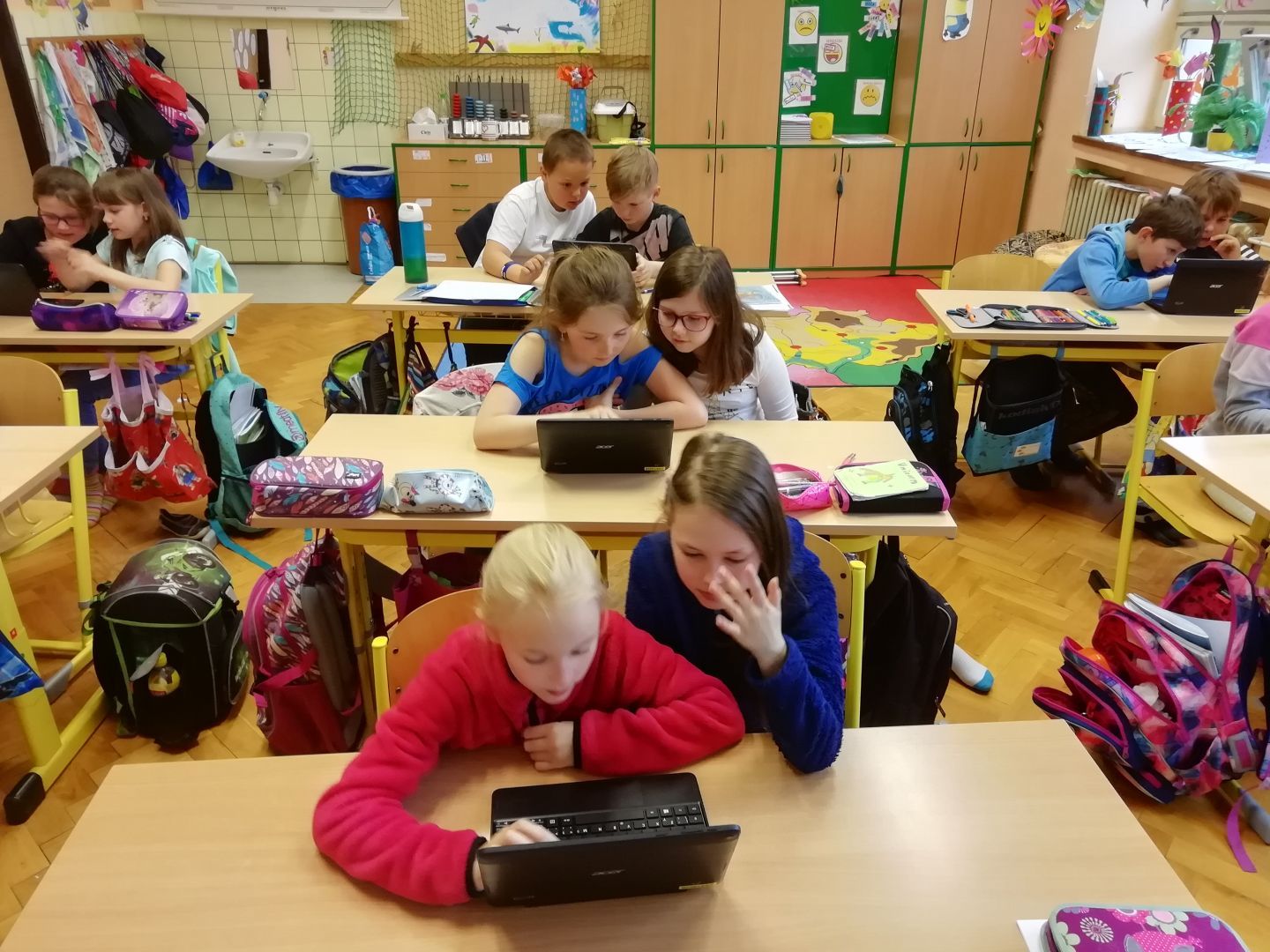 K radosti všech žáčků proběhla výuka českého jazyka s novými tablety. Cíl hodiny jasný, vyjmenovaná slova po V - procvičování slov s předponami vy/vý.