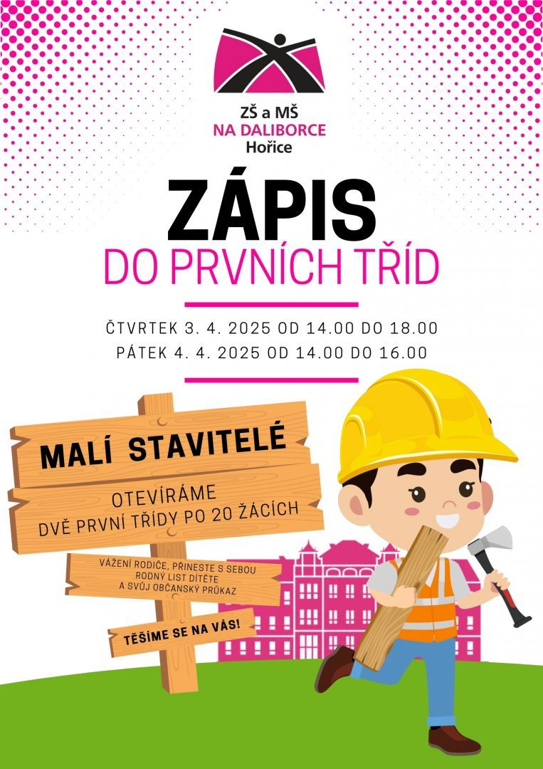 Kategorie Aktuality, Základní škola, Informace Datum konání akce 3. duben 2025 INFORMACE K ZÁPISU ZDE KRITÉRIA PŘIJETÍ ZDE NA BUDOUCÍ PRVŇÁČKY SE TĚŠÍ TŘÍDNÍ UČITELKY KRISTÝNA MORAVCOVÁ A HELENA NOVOTNÁ.