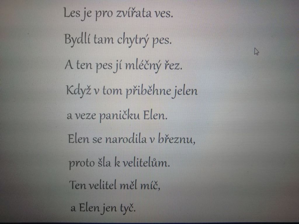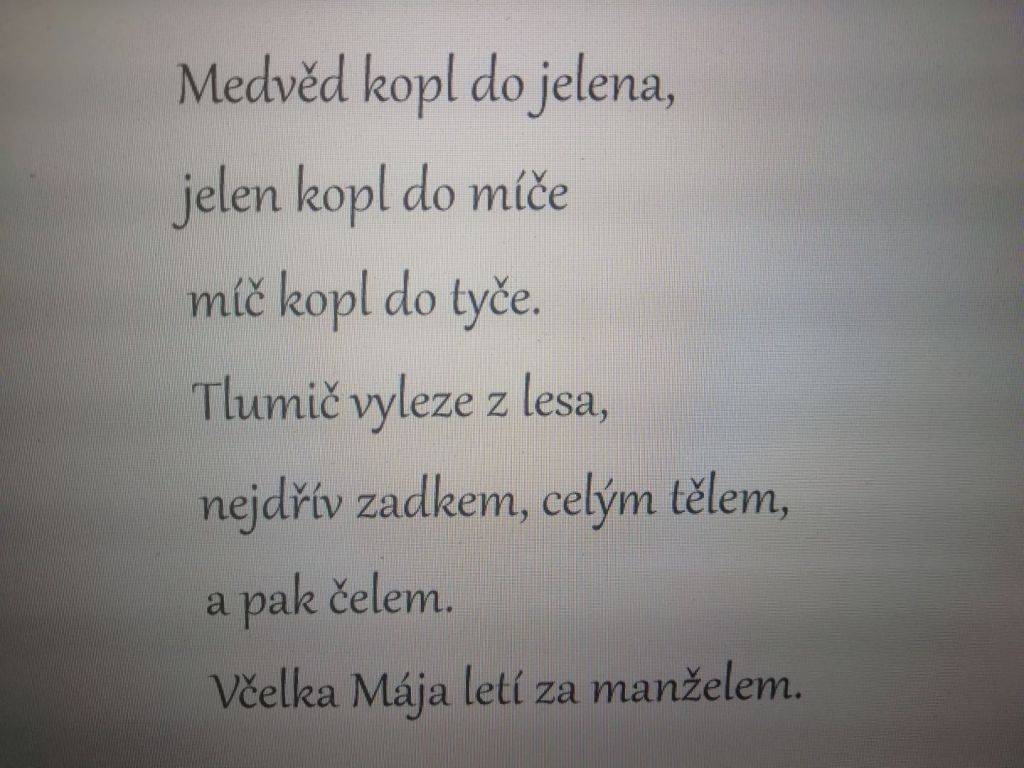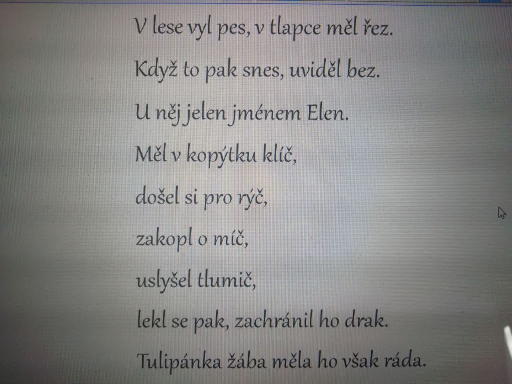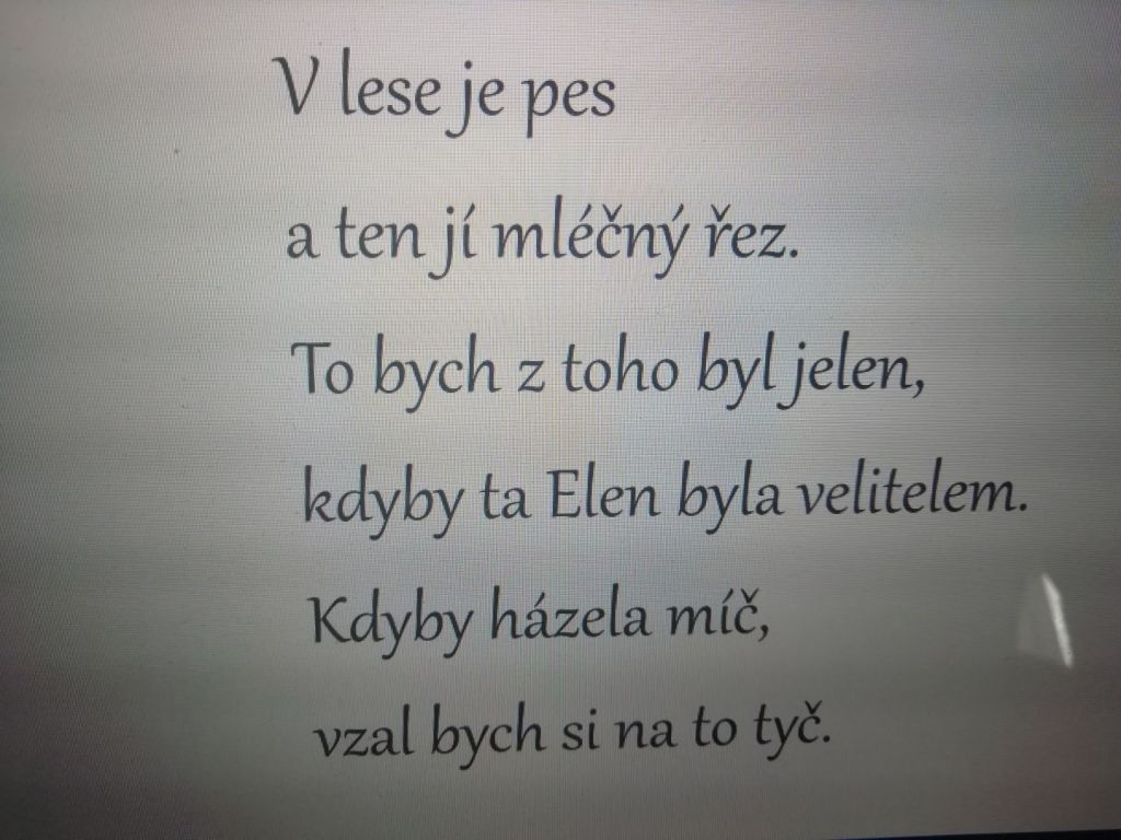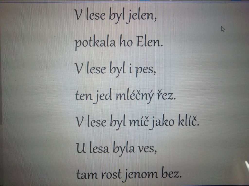 O hodině českého jazyka jsme zkoušeli sepsat báseň na předem zvolená slova. Slova byla: les, jelen a míč. Jen se podívejte, jak jsme si vedli...:-)