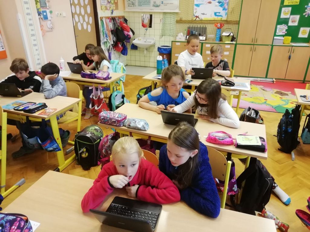 K radosti všech žáčků proběhla výuka českého jazyka s novými tablety. Cíl hodiny jasný, vyjmenovaná slova po V - procvičování slov s předponami vy/vý.