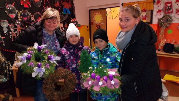 V prostorách přístavby proběhla již tradiční adventní vazba. Někdo se přišel jen vánočně naladit, prohlédnout si výstavu krásných adventních svícnů a věnců, zakoupit šperky a drobné vánoční dárečky, někdo si přišel vlastnoručně vytvořit vánoční výzdobu. Vznikly svícny a věnce jeden hezčí než druhý, všem se dařilo a nikdo neodešel s prázdnou. Veliký dík patří těm, co se zúčastnili a také p. vychovatelce J. Horáčkové za přípravu a vedení celé akce. Nyní už jsme vánočně naladěni a nezbývá než netrpělivě čekat. Však my se dočkáme!
