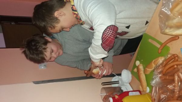 V rámci vánoční besídky si žáci sedmé třídy zorganizovali několik aktivit. Největší úspěch měl Petr Dufek, který nám za pomoci Jakuba Dospěvy připravil občerstvení v podobě párku v rohlíku. Vůně se linula po celé škole a přilákala i žáky z jiných tříd. Dívky zase vytvořily cukroví z nepečeného těsta. Hrály se hry, povídalo se, rozdali jsme si dárečky a vše vyvrcholilo vánoční tombolou.