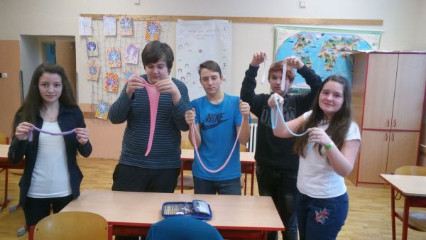 Motivační laboratorní práce, kdy si žáci mohli vyrobit svého slizáka nebo hopíka. Po samotné výrobě zjišťovali různé vlastnosti této zajímavé hmoty.