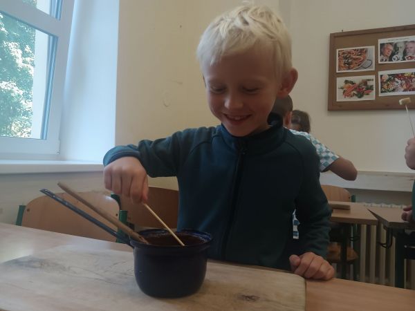 Dne 13. 9. se slaví Mezinárodní den čokolády, a protože ve školní družině máme rádi čokoládu, nenechali jsme si tento den ujít. Přečetli jsme si, jak se čokoláda vyrábí, prohlédli si obrázky kakaových bobů a různých druhů čokolád. Zatancovali si na písničku čokoládu a nejzábavnější část byla, když jsme připravovali čokoládovou pochoutku - fondue. Den čokolády byl pro děti zážitkem, kdy zjistily, že výroba čokolády je náročný proces, který vyžaduje spoustu práce a trpělivosti.