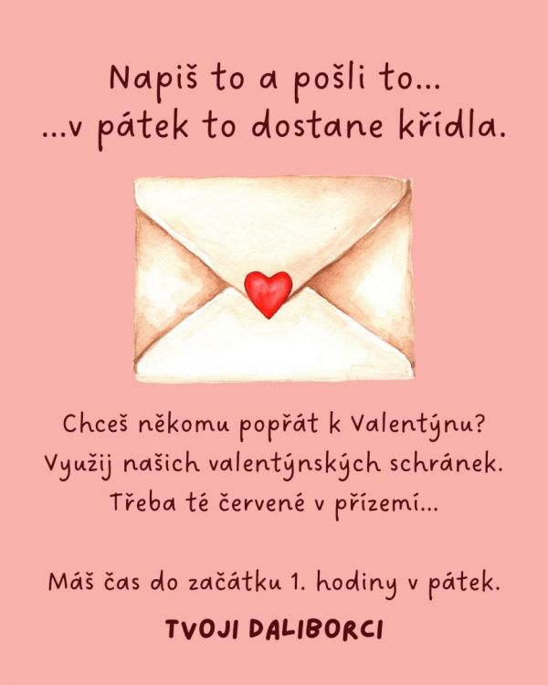 Dnes jsme překvapili Valentýnsky vyzdobenou školou plnou srdíček. Naši amorci roznesli mnoho krásných vzkazů, každá dívka na škole od nich obdržela drobnou ozdobičku ve tvaru růžičky a pozornost neminula ani naše milé třídní paní učitelky. Všude bylo plno radosti, úsměvu a lásky a Daliborci byli rádi, že k tomu mohli svým dílem přispět.
