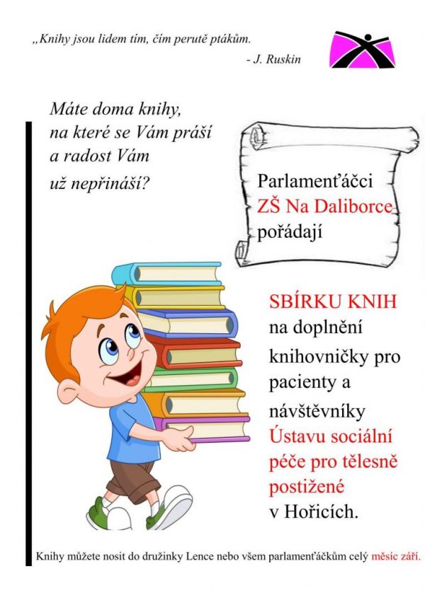 I letos pokračujeme ve spolupráci s nedalekým Ústavem sociální péče, k němuž chováme hlubokou úctu. A knihovničku je třeba obměnit novými tituly...:-)