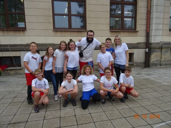 Poslední den před podzimními prázdninami si zástupci ŠP nachystali pro všechny děti Na Daliborce jednoduchý projektík. Cílem bylo zahájit novou sezonu v soutěži SAZKA Olympijský víceboj, jíž se i letos účastníme a o hodinách TV plníme jednotlivé disciplíny. Na prostranství školy si připravenou hudební rozcvičku užily jak děti I. stupně ZŠ, tak následně i ti starší. Společně jsme pak vytvořili živý symbol OH, pět vzájemně propojených barevných kruhů. Dětem se akce moc líbila. Rádi bychom poděkovali ochotným paní učitelkám za to, že nezkazily srandu a bez problémů s námi do toho šly. Byla to paráda. :-)