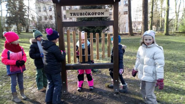 V krásném prostředí Smetanových sadů si můžeme zahrát i pexeso nebo zazpívat za doprovodu trubičkofonu...