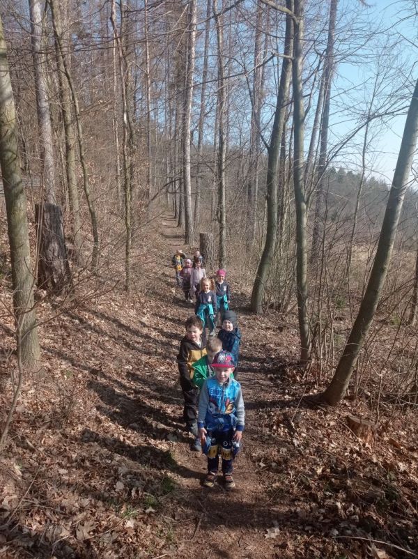 Dnes jsme se v rámci velké vycházky vydali do lesa směr Doubrava. Odměnou nám byla probouzející se jarní příroda. Jen ji něco chybělo...voda! A tak tančíme a voláme déšť.