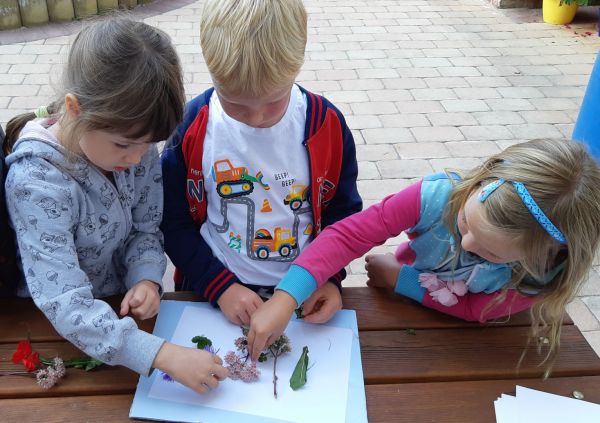 Jak vypadá jestřáb? Naši Jestřábi to vědí. Společně tak vytvořili jeho obraz z přírodnin.