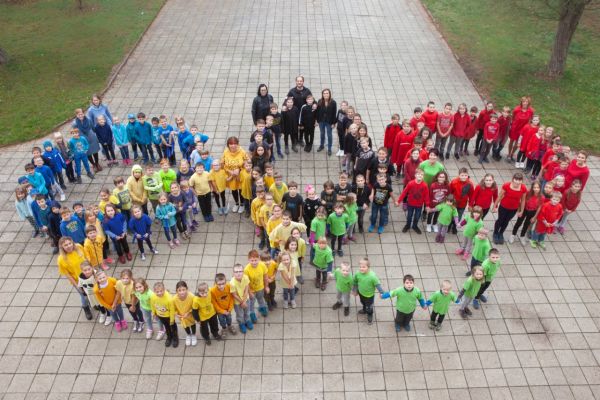 S radostí jsme přijali pozvání starších kamarádů ze školy a zacvičili si před školou. Společně jsme pak vytvořili živý symbol OH, pět vzájemně propojených barevných kruhů...