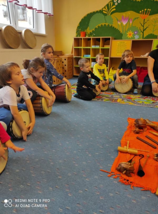 Muzikohraní nás baví. Bubnujeme....hrajeme na různé nástroje