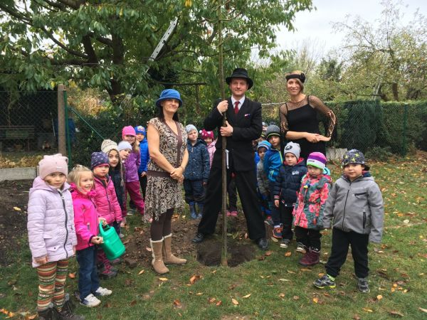 Výročí vzniku samostatné republiky jsme si připomněli i v naší mateřské škole, a to za přítomnosti pana ředitele Jana Sezimy a paní zástupkyně Lady Štěpánkové vysazením lípy svobody, která bude ozdobou zahrady naší školky a bude v budoucnu tvořit příjemný stín pro aktivity dětí. Po doznění české státní hymny jsme společnými silami lípu vysadili a popřáli jí dlouhá léta. Věříme, že za 100 let na tento slavnostní okamžik opět někdo vzpomene.