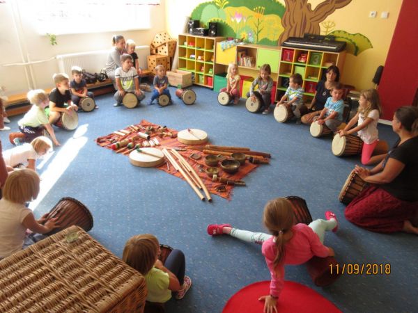 Tento rok budeme Laďku s bubínky vídat v naší školce každý měsíc...První setkání jsme si moc užili, bubnovali jsme, zpívali, vyzkoušeli různé nástroje, tančili i relaxovali...