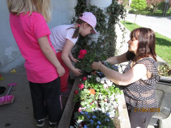Povídáme si o přírodě...sázíme květiny před školkou...školáci lípy před školou...jsme ochránci přírody!