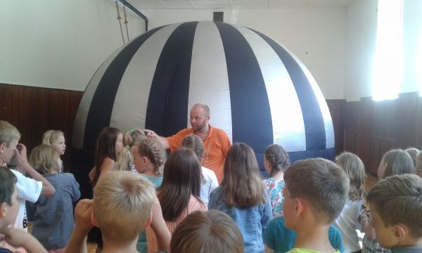 Ve dnech 5. - 6. června navštívilo naší školu sférické kino (www.sferickekino.cz) a všichni žáci naší základní i mateřské školy měli možnost postupně v tělocvičně shlédnout celou řadu poutavých filmů. K úhradě akce byly využity finanční prostředky získané za sběr starého papíru. Všem žákům i rodičům za to děkujeme!