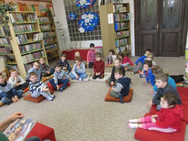 Před výpravou za Indiány do knihovny jsme si ve školce o jejich životě povídali. Vyprávění paní knihovnice bylo poutavé a najednou jsme se proměnili v Indiány v lovce bizonů, tančili kolem ohně, pokřikem zaháněli nepřátele. Dýmkou míru jsme se rozloučili a předali obrázek se vzpomínkou na dnešní indiánské dopoledne.