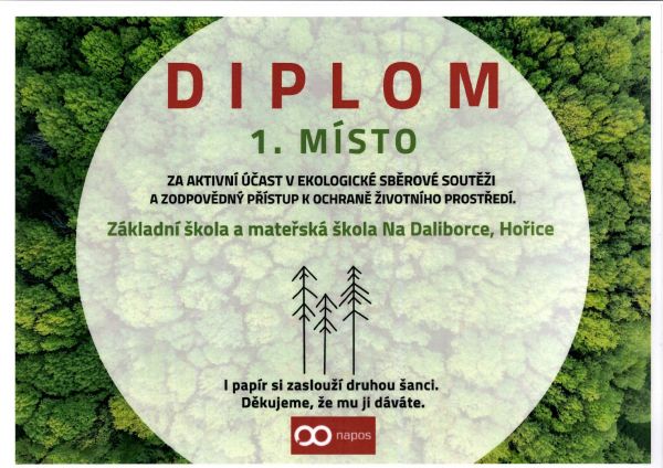 V letošním školním roce jsme nasbírali celkem 22 440 kg starého papíru. I ve 2. pololetí jsme ocenili nejúspěšnější třídy diplomem a nejlepším sběračům (za celý školní rok) jsme k diplomu přidali i něco sladkého. Děkujeme všem, kdo pravidelně přispíváte a pomáháte tak nejen třídním fondům, ale i přírodě!