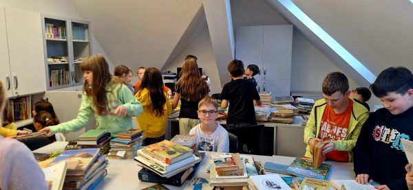 Společně s dětmi 4.A budujeme zcela novou knihovnu v podkroví školy.