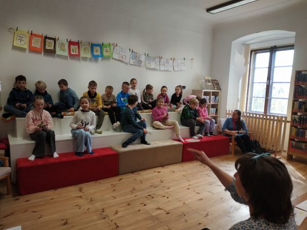 Dnes jsme ještě naposledy navštívili dětskou knihovnu v dočasných náhradních prostorách na hořickém zámku. Paní knihovnice S. Najmanová si pro nás připravila program o čtenářství z knížky Kamil neumí lítat. Povídání o čtení i knížky samotné nás tak zaujaly, že se nám ani nechtělo zpátky do školy:)...