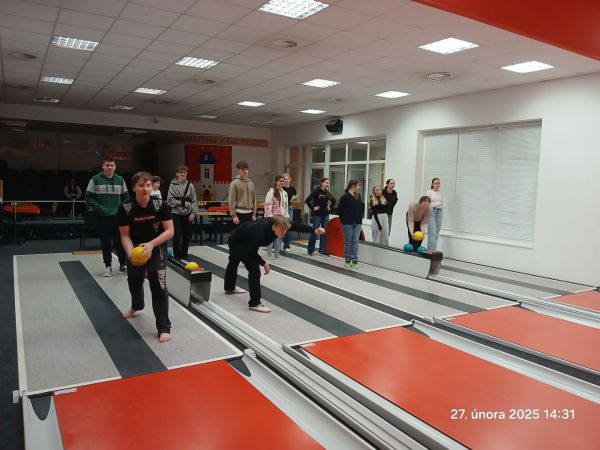 Dnes si žáci deváté třídy užili netradiční hodinu tělocviku, kdy se při suplované hodině vydali na kuželky. Byla to skvělá zábava a příjemné zpestření školního dne!