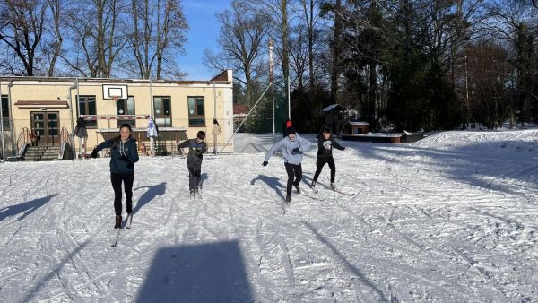 Využili jsme příležitosti zasněženého hřiště a obuli běžky.
