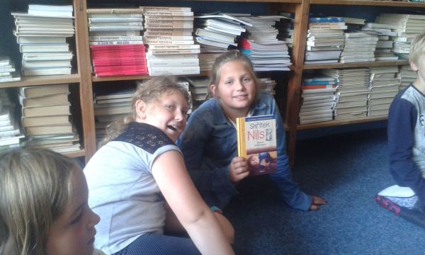 Jednou týdně chodíme trávit hodinu čtení mezi knížky do nové školní knihovny. Děti tady povídají o svých přečtených knihách a pak se společně začteme do nějakého zajímavého příběhu.