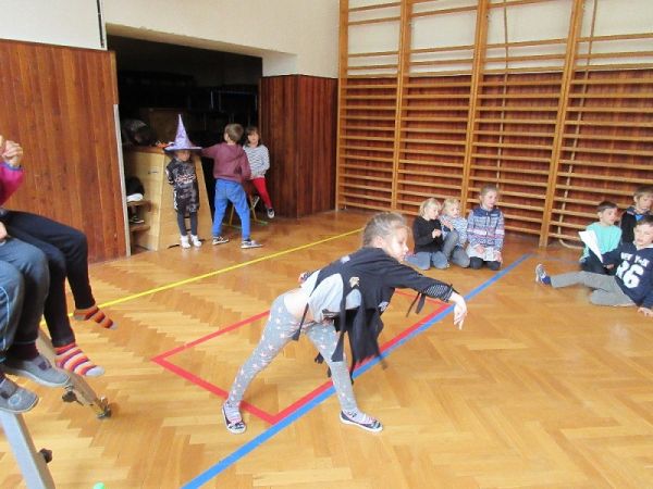 Celý týden jsme se připravovali na konec dubna, kdy se děti sešly v maskách čarodějnic a čarodějů.Děti si vyráběly čarodějnice a čaroděje, pavouky, kocoury, předškoláci si rozvíjeli grafomotorické dovednosti kresbou pavučiny. Po svačině jsme si připravili elixír se zaříkáváním. Pak přišel na řadu tanec s koštětem, chytání pakouků, rozmotávání hadů, podlézání koštěte, čarodějnická honička. Celé dopoledne jsme ukončili veselým pokřikem: "Čarodějnický rej - a nám bude večer hej!"