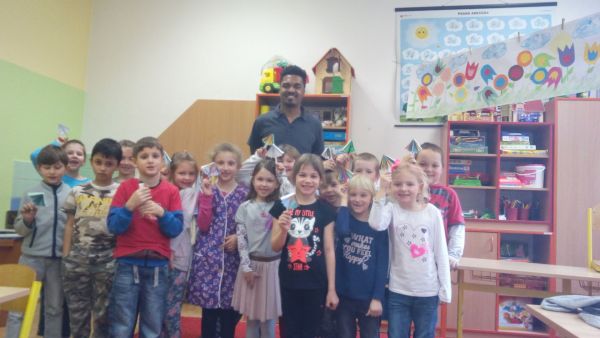 Dnes naši třídu navštívil Jesse B. Moore, který na naší škole vede týdenní jazykový kurz. Děti měly za úkol se anglicky představit a pozdravit se s ním. Pro některé jedinečný zážitek. :-)