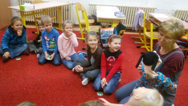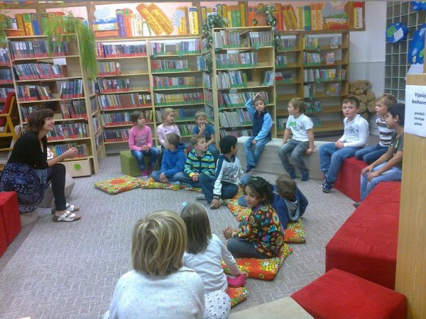 Ve čtvrtek 20. října jsme s žáčky této třídy navštívili dětskou knihovnu. Někteří z nás tu byli poprvé, někteří už prostory knihovny znali z dřívější návštěvy s rodiči nebo staršími sourozenci. Ale všem se nám tu moc líbilo. Paní knihovnice Stanislava Najmanová si pro nás připravila moc pěkné vypravování o knížce spisovatele Miloše Kratochvíla - Hloupežníci. Poutavé vypravování a pěkné prostředí knihovny nás určitě navnadilo a tak jistě rádi knihovnu opět navštívíme, ať už při další besedě nebo třeba brzy i s přáním si půjčit a přečíst svou první knížku.