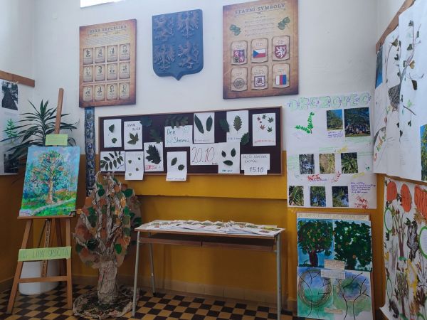 Krásu stromů jsme si letos připomněli celoškolním projektem. Každá třída zpracovávala informace o vybraném stromu z okolí naší školy. Do projektu se zapojily i děti z mateřské školky, které dokonce pod vedením malířky namalovaly obraz. Výsledkem jsou originálně zpracovaná díla, kterými jsme vyzdobili naši školu. Všem patří velké díky.